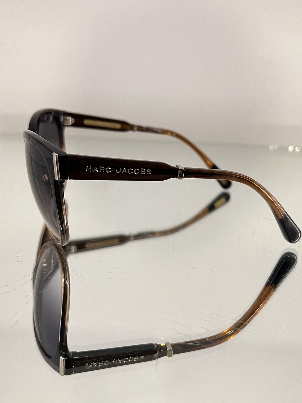 Óculos Marc Jacobs confeccionado em acetato nas cores degrade, hastes com logo em metal na cor prata, lentes quadrada.