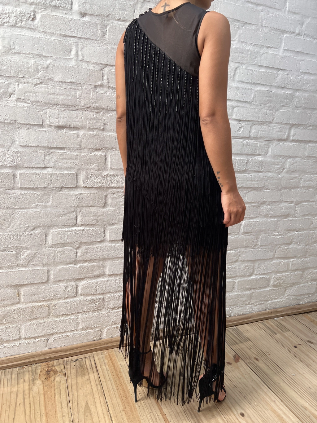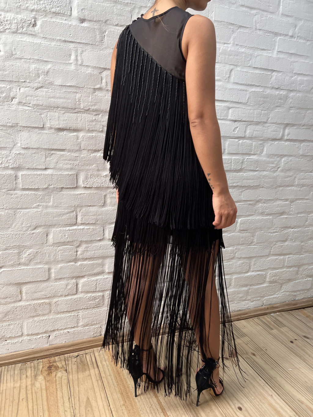 - Confeccionado em corpo: 100% Seda; Franjas: 100% viscose e bordado 100% acrílico na cor preta